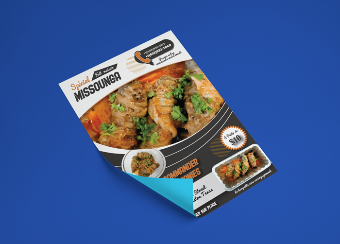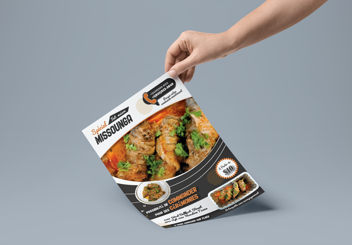 Conception d’une affiche graphique pour l’une de nos clientes qui offre ses services dans la restauration. Notre cliente est rentrée en contact avec Talela Group pour demander un accompagnement en design graphique. Après une analyse du contexte, nous avons livré le client avec succès dans les délais. La cliente très satisfaite, a demandé d’autre accompagnement pour ses projets graphiques et web.